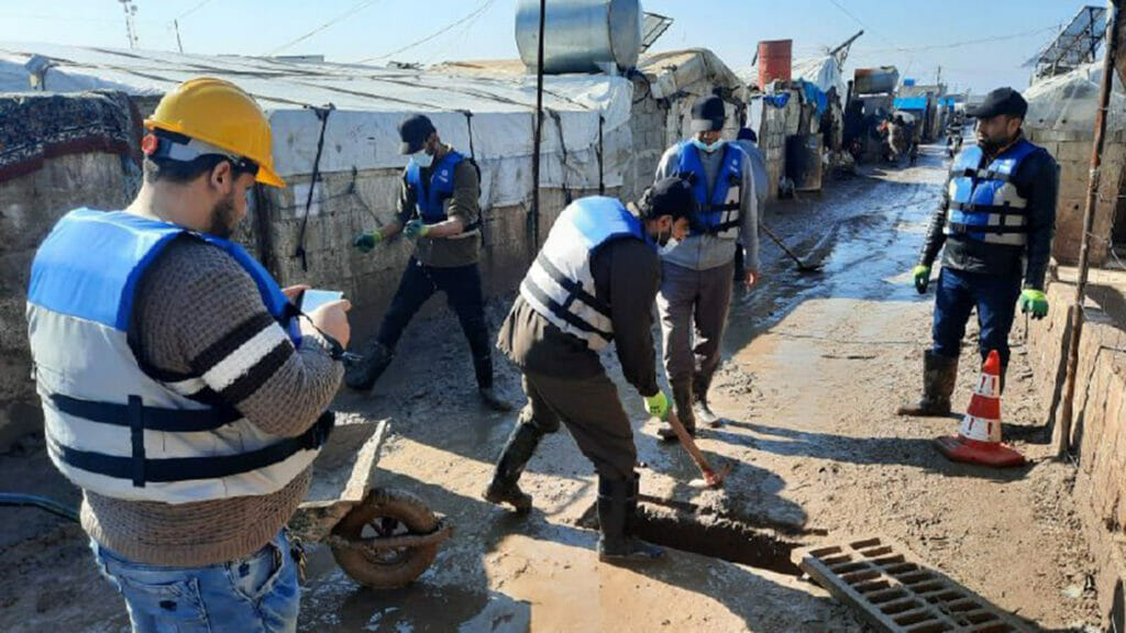 To address these issues, Global Communities began implementing a Disaster Risk Reduction-Flood Response and Mitigation activity in October 2021 under the ATLAS program. Asem was one of 98 Cash for Work (CfW) participants who was selected and provided with vocational training to reduce the risk and mitigate the impact of potential disasters in targeted areas of Atmeh, Deir Hassan and Qah camps. Their tasks primarily involved precautionary daily activities and some emergency interventions. In all, they carried out 956 interventions, including 855 stable and 101 emergency, as of the end of March 2022.