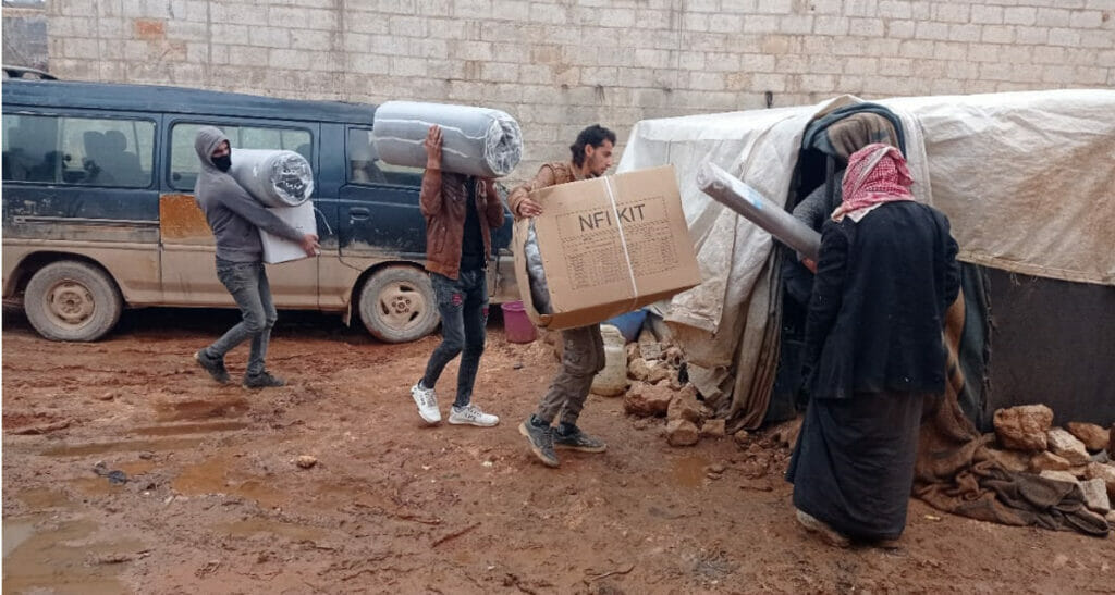 In addition to these interventions, Global Communities distributed 100 flooring kits to 100 households who have a family member with a disability and are living in tents in Atmeh camp. Since December 2021, as floods, fires, windstorms or other extreme weather conditions have affected families’ assets, Global Communities has responded with NFI kits for 94 additional households.